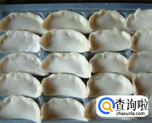 用擀面杖擀成面皮,中间厚边上薄,放上肉馅包成饺子形状。