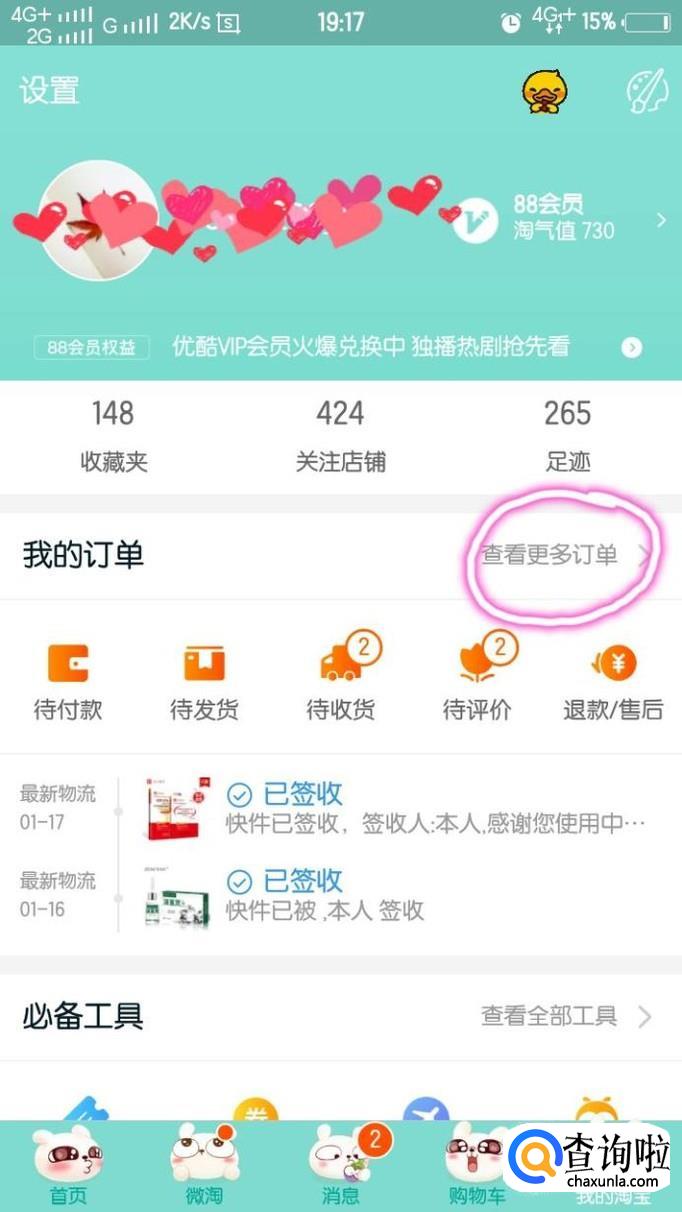 点击淘宝app——我的淘宝——我的订单