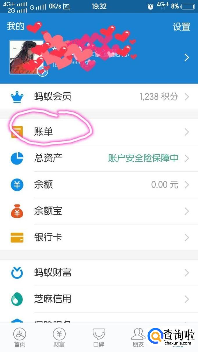 如果担心赔款没有真实入账,我们可以通过支付宝查询。打开支付宝app,点击“我的”——“账单”