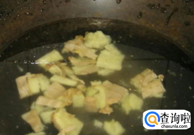 首先,取一块生姜洗干净并且去皮,然后切成片或者切小块拍碎。然后将生姜放入锅内加入两碗清水烧开。