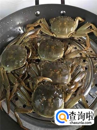 蒸锅里面倒入一些清水,把蒸格放进去,河蟹摆放进去,盖上盖子大火烧开。