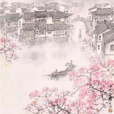 “杏花烟雨江南”出自元代虞集的《风入松·寄柯敬仲》:“报道先生归也,杏花春雨江南。”译文:春日江南,杏花盛开,烟雨蒙蒙,如诗如画,令人心醉而神往。“杏花春雨江南”这句,仅仅六字,却足以抵得上千言万语,均由名词组合而成,未加任何形容词,以白描笔法写成,把江南春色描绘得淋漓尽致,可谓妙笔天成。词以景结情,极为警策。