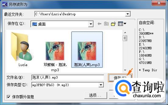 另存波形为窗口中,选择输出格式、输出路径和文件名。“保存”。