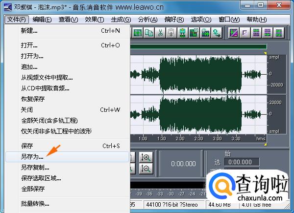设置好后,就可以导出音频文件了。选择“文件”-“另存为...”。