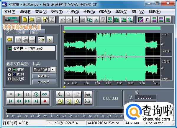 首先,下载一个音乐处理软件,这个可以自己选择。打开音乐处理软件,执行“文件”-“打开”将音乐文件添加进来。可以点击如下图所示左上方的音乐消音软件按钮切换到波形编辑界面(单轨编辑模式)。或是按键盘“F12”可以在“波形编辑界面”和“多轨界面”之间进行切换。