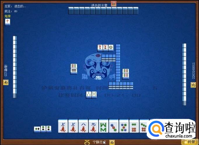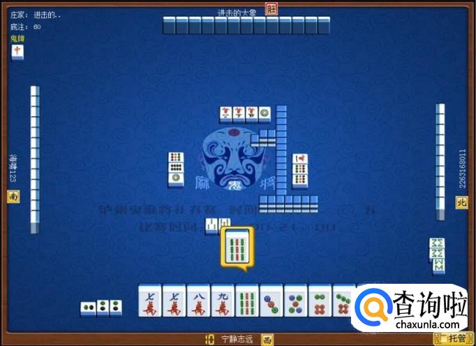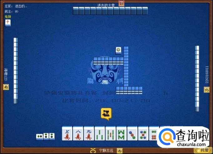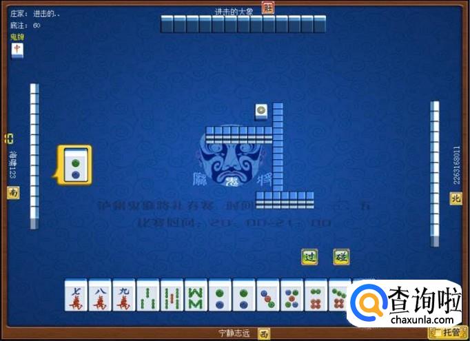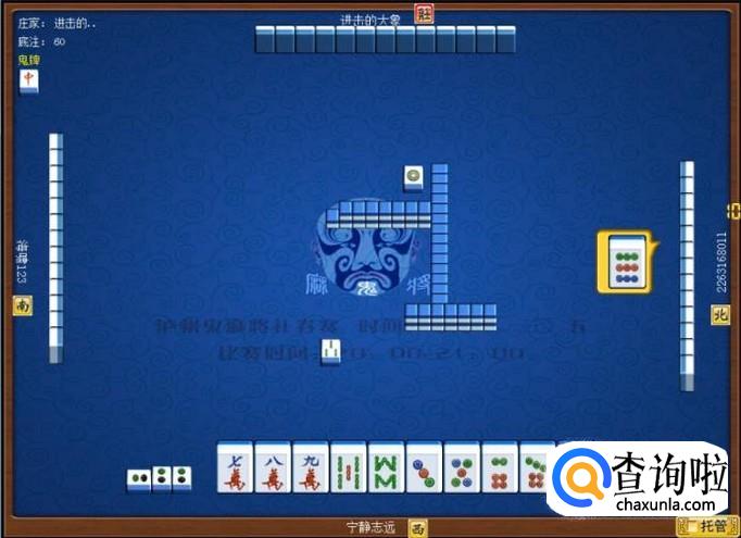对家是庄家,庄家出牌,庄家出牌打一筒,意味着庄家要打缺筒子。顶家摸牌打二筒,意味着顶家要打缺筒子。如图所示。