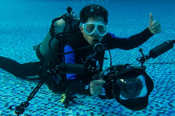 当我们在水下睁开眼睛,由于水的折射率大于空气,光从水中进入眼睛产生的偏折效应小于在空气中。这也就相当于对光进行了一次发散,其结果就是让我们看的清晰了。