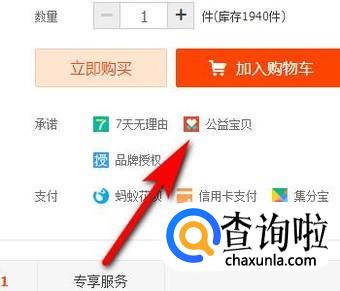 打开商品的详情页面,就会看到有公益宝贝的标识。