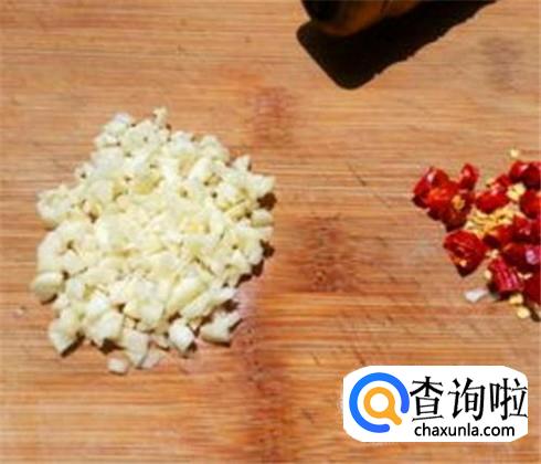 豇豆的作料很简单,几瓣大蒜就可以,喜欢吃辣的可以加上一个红辣椒,味道会更好。大蒜拍碎,红辣椒切成几段。