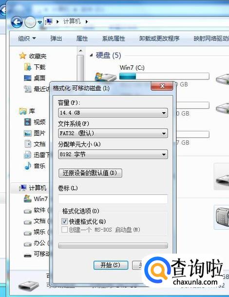 打开“计算机”,找到我们的U盘。在U盘上右键,选择“格式化”。