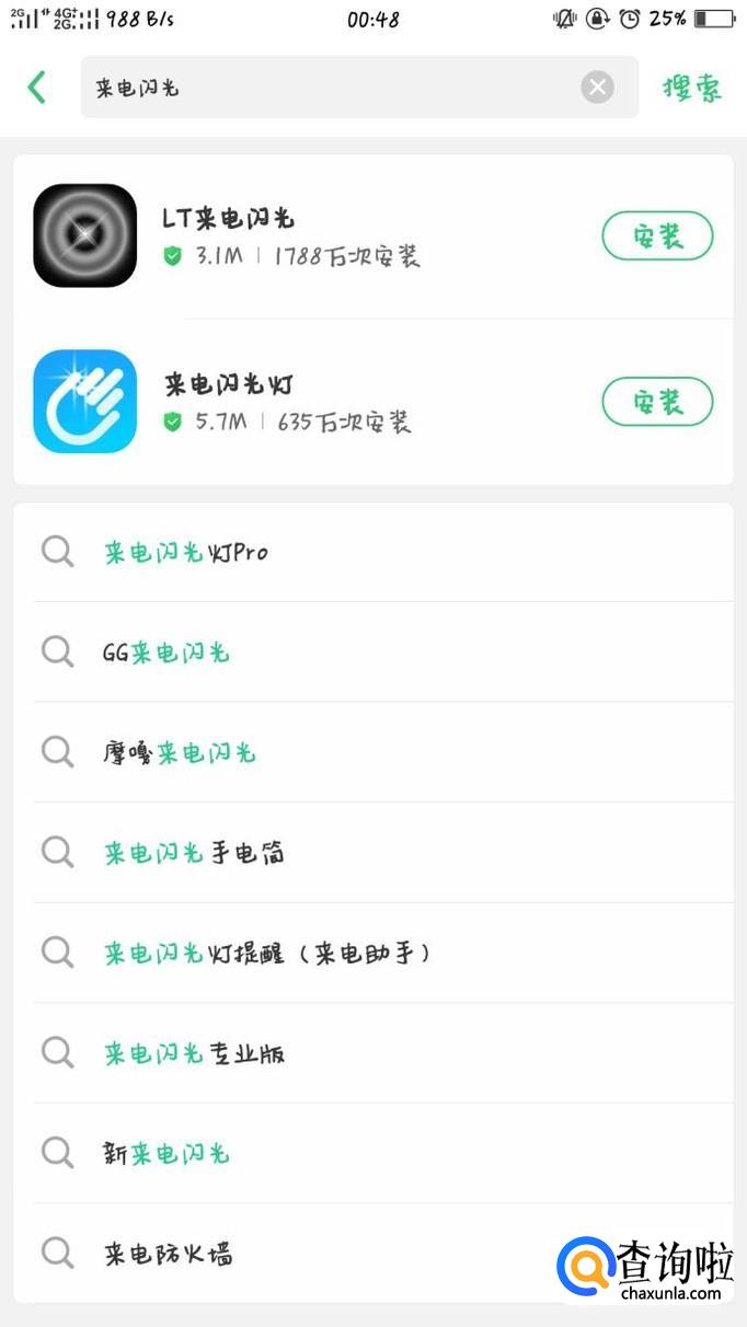 打开手机,选择一款你常用软件商店,例如其自带的软件商店,搜索来电闪光灯这款应用。