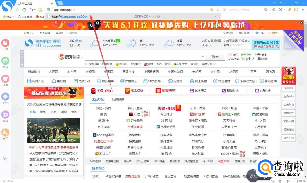 打开搜狗浏览器,搜索ti.qq.com/qq20th。