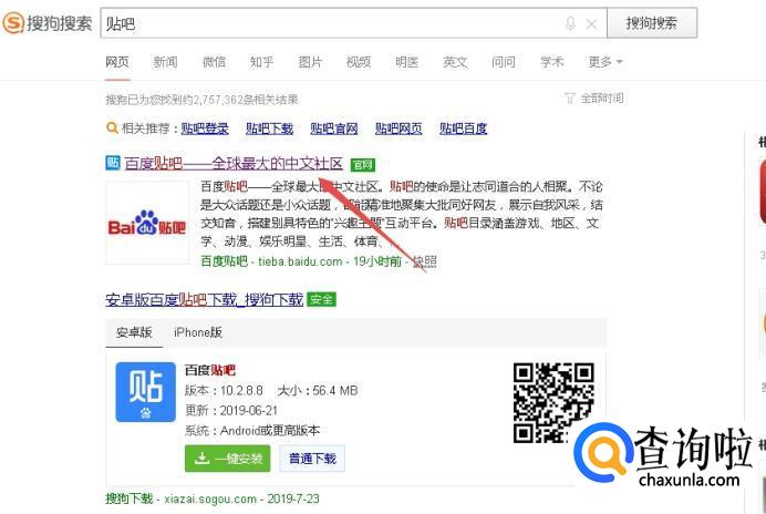点击第一个选项“百度贴吧”,注意后面带有官网标识。