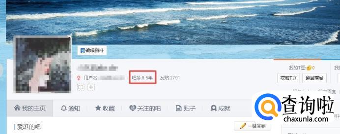 接下来就会进入到自己的贴吧主页,可以看到自己的吧龄,因为吧龄后面的小数是四舍五入的,我们可以等到变化的时候再计算更准确一些,如8.5年变到8.6年,实际那一天的吧龄就是8.55年,用8.55年往前推算日期。