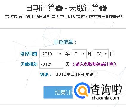 我们可以用“日期计算器”来计算,8.55年大约是3121天,此时注意往前算天数的话要输入负数,所以输入“-3121”点击“结果计算”,就可以看到准确的日期啦。