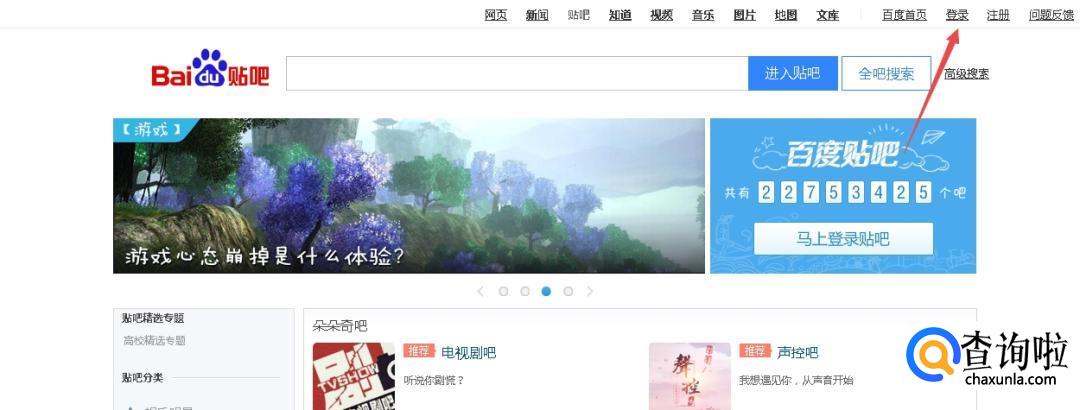 进入贴吧页面后,点击右上角的“登录”选项。