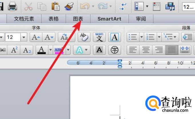 打开word文档,点击工具栏上的‘图表’