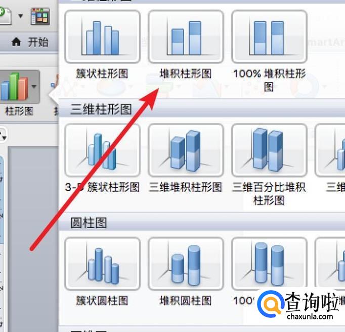 在图表工具下,点击左边的‘柱状图’