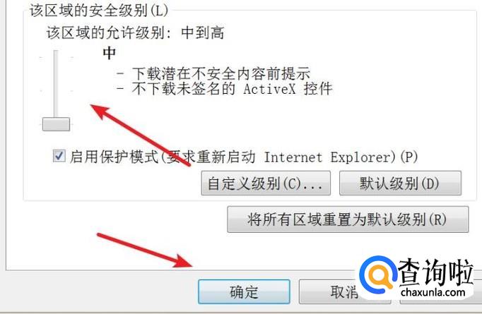 拖动滑块,让其级别为中,点击确定按钮就行了。