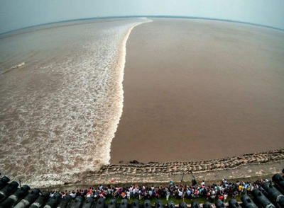 钱塘江是浙江省最大河流,是宋代两浙路的命名来源,也是明初浙江省成立时的省名来源。以北源新安江起算,河长588.73千米;以南源衢江上游马金溪起算,河长522.22千米。自源头起,流经今安徽省南部和浙江省,流域面积55058平方公里,经杭州湾注入东海。钱塘江潮被誉为“天下第一潮”,是世界一大自然奇观,它是天体引力和地球自转的离心作用,加上杭州湾喇叭口的特殊地形所造成的特大涌潮。