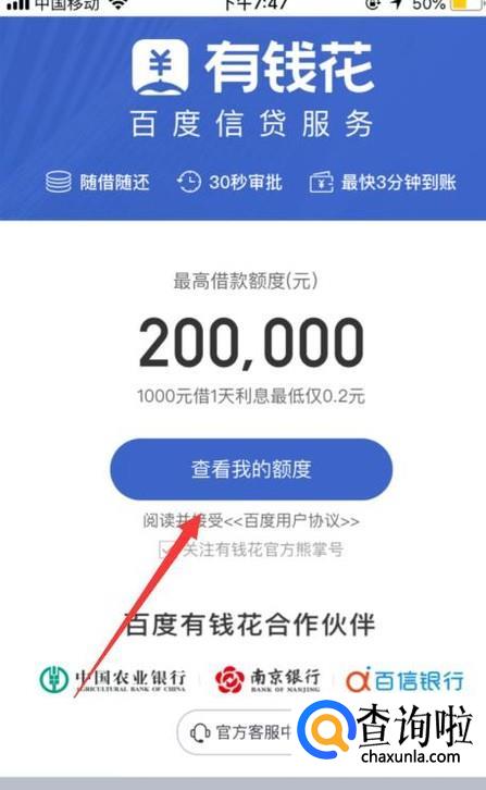 完毕之后等待审核,审核通过之后查看自己的额度,如下图。