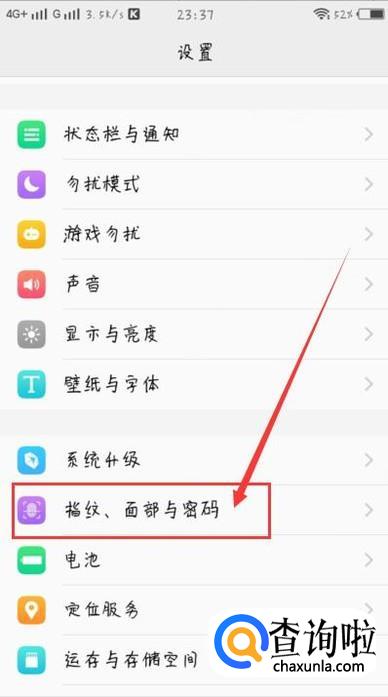 进入设置后,滑动手机屏幕找到设置中的“指纹、面部与密码”,点击并进入,如图所示。