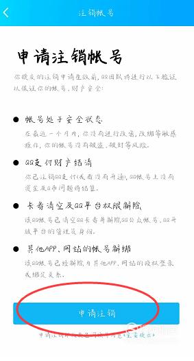 现在就进入了注销账号界面,点击下面的“申请注销”就可以了,但在你申请注销账号生效前,QQ团队会进行一些验证,验证通过后才能注销成功哦。