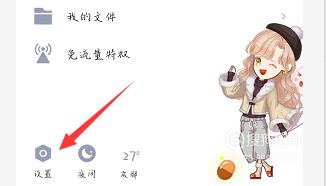 打开手机QQ,把界面往右划找到左下角的设置,然后点击它进入设置界面,如下图。
