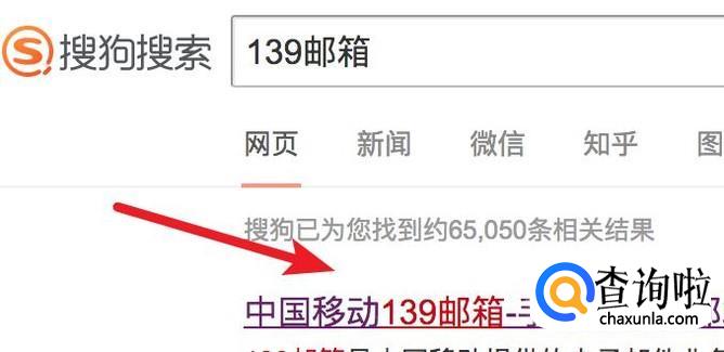 先打开搜狗搜索,输入‘139邮箱’来搜索。点击打开第一个结果。