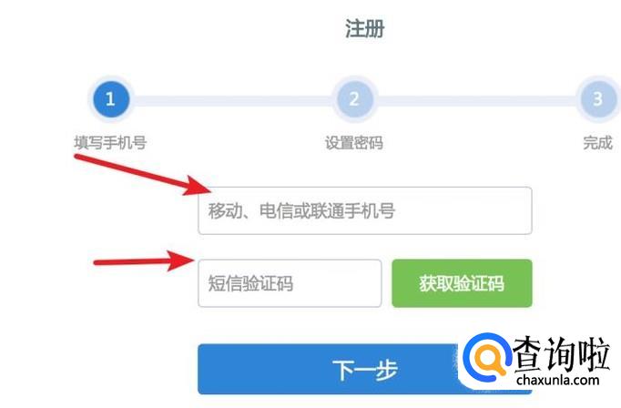 在这里输入自己的手机号,然后输入手机收到的验证码,点击下一步。