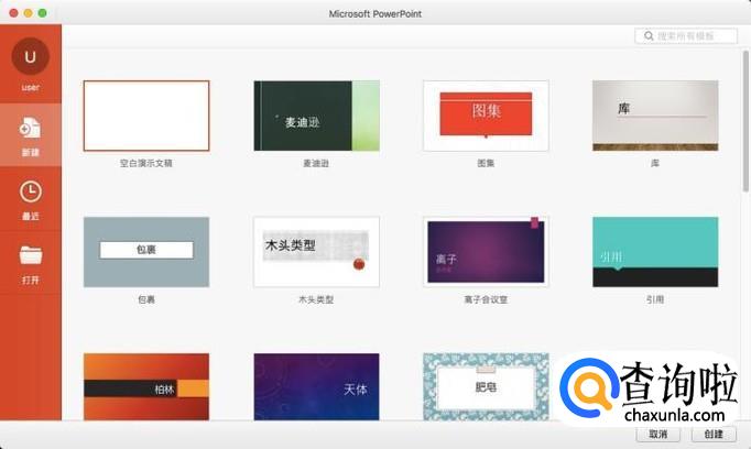 在打开PPT软件之后,我们能够创建空白的文稿,或者是直接使用系统预设的模板来快速进行创作。
