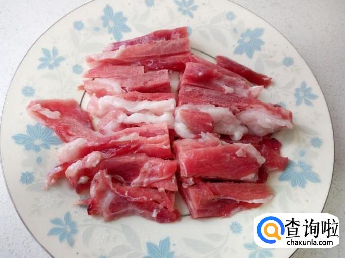 肉切成条备用。