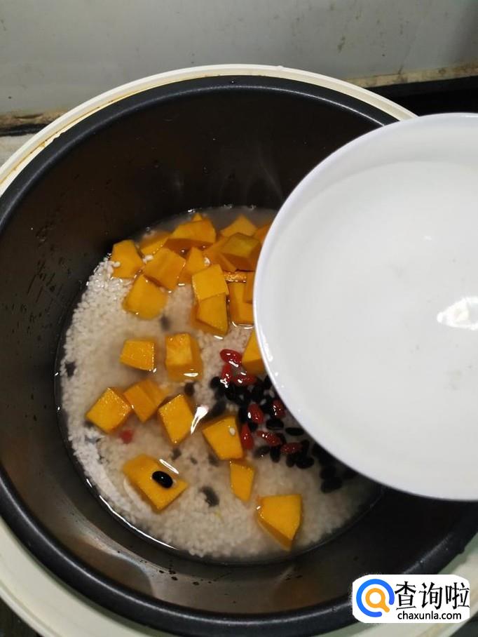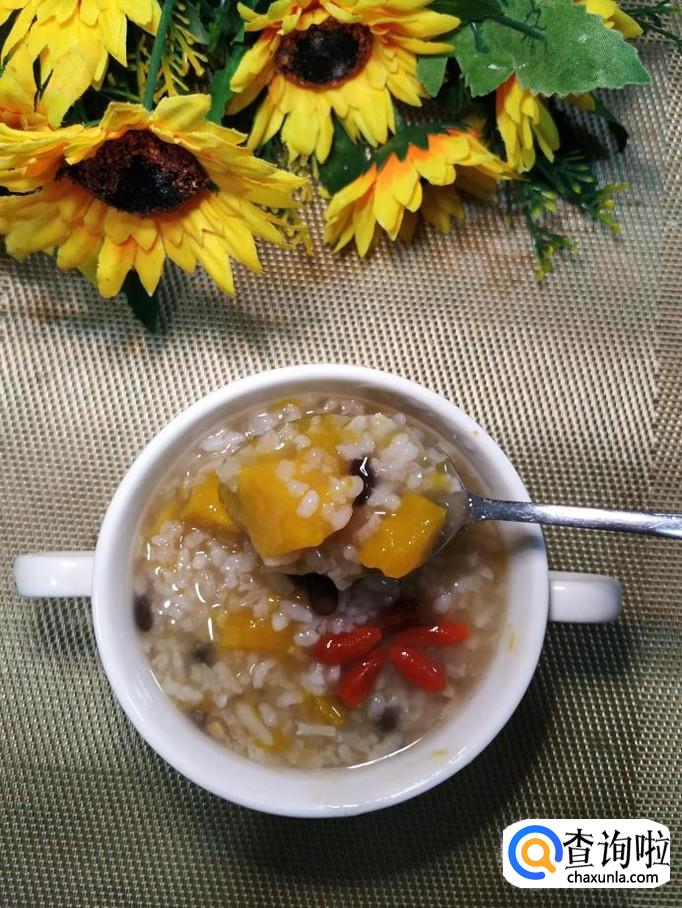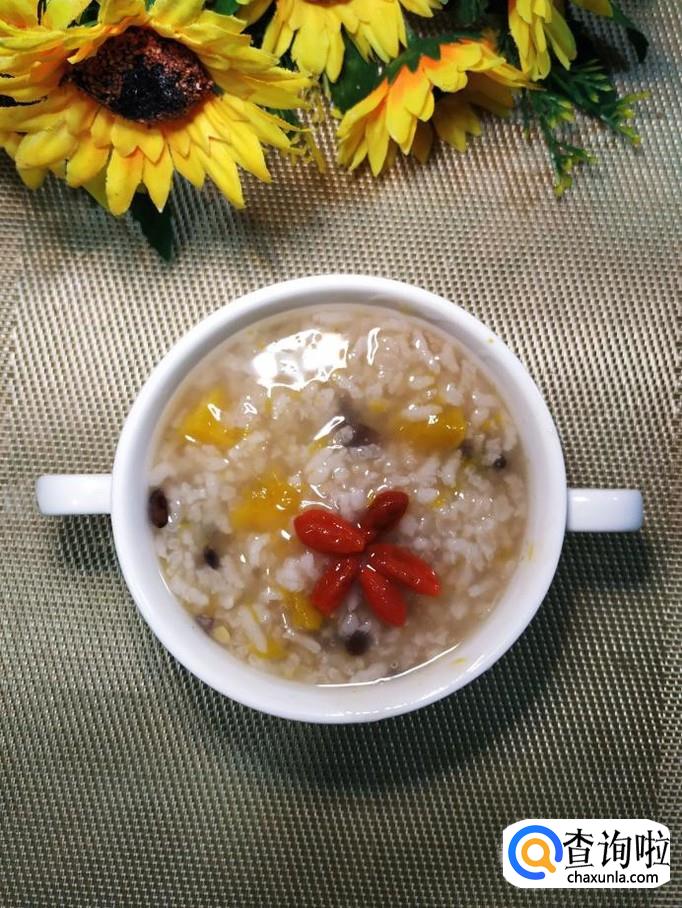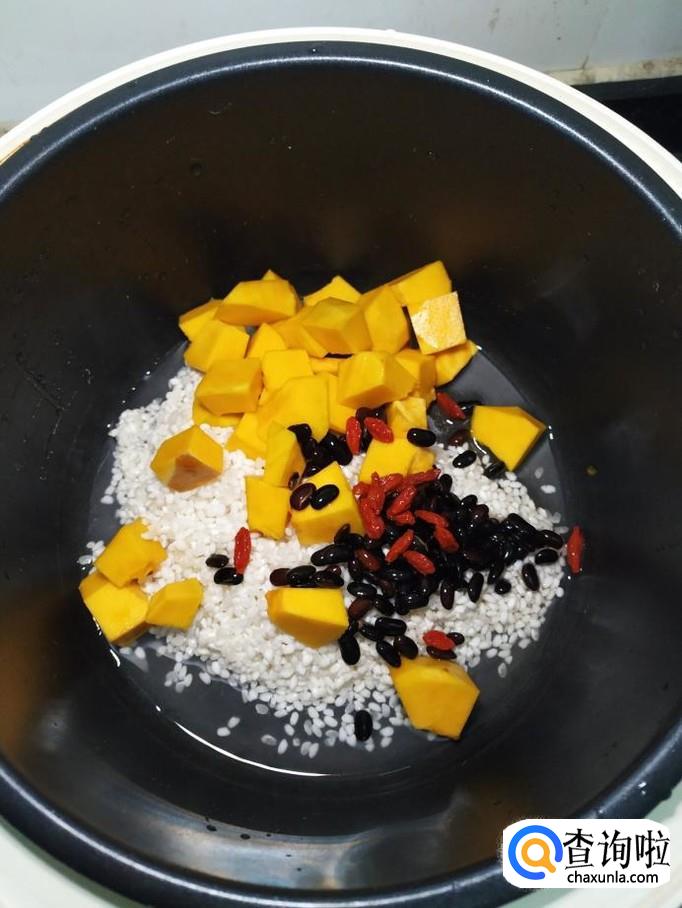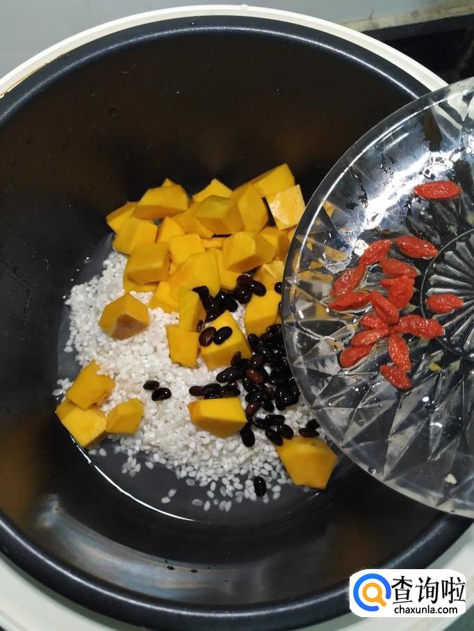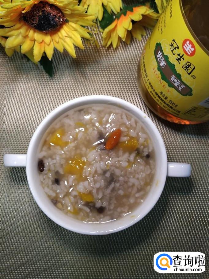 黑豆适量,南瓜适量,枸杞子适量,大米适量,糯米适量,蜂蜜适量。
