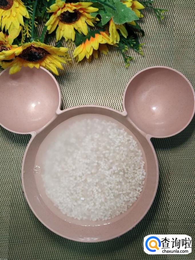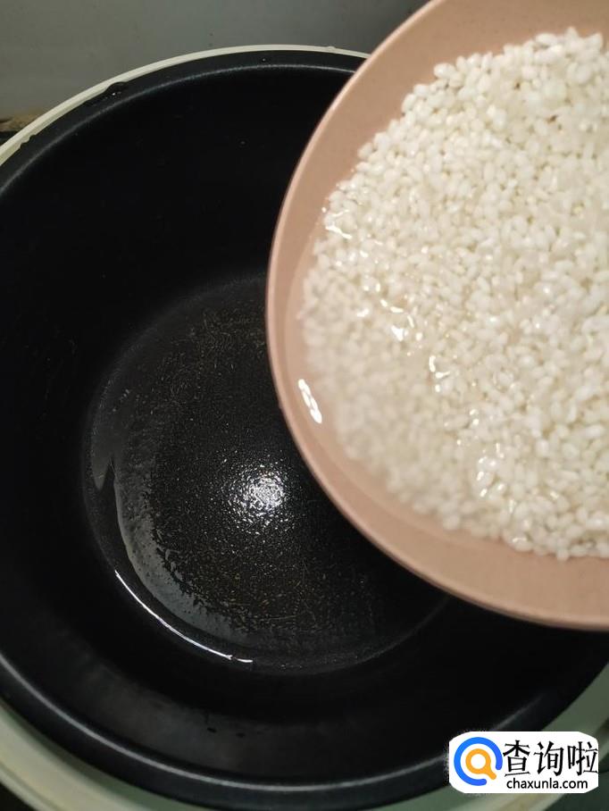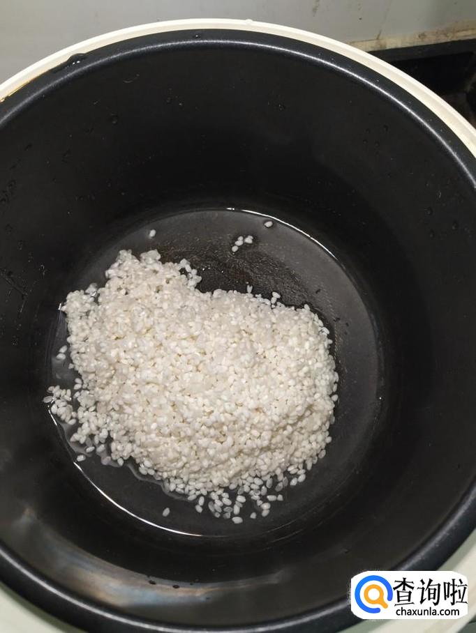 将大米和糯米都倒入锅中,大米和糯米的比例是按照1:1的比例来放的,这个是两个人的量。