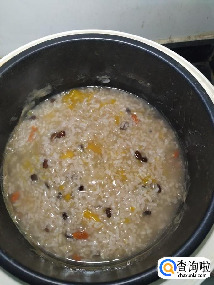 熬至大米和糯米都开花了,尝一尝,黑豆也熟了,就差不多了。