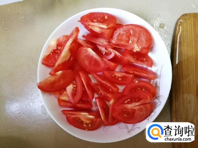 首先我们需要将西红柿清洗干净后将其切成片状。