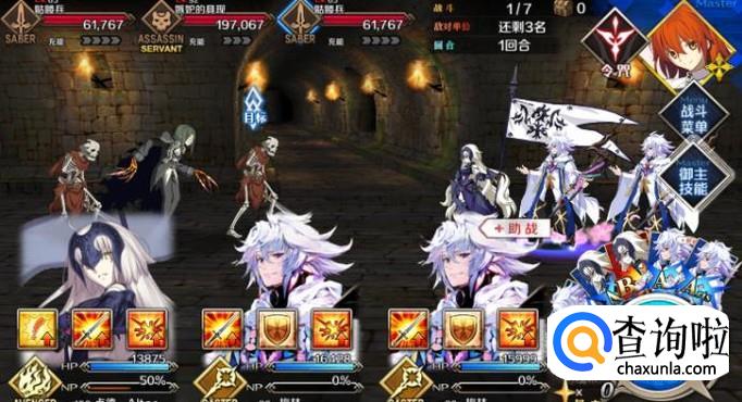 白贞和剑元帅的组合,在黑贞面前不值一提,直接秒掉白贞,剩下的剑元帅就是个沙包。前面第一面的枪士兵,随便一个剑阶三下就秒掉了,第二面依旧可以上狂阶兰斯洛特。