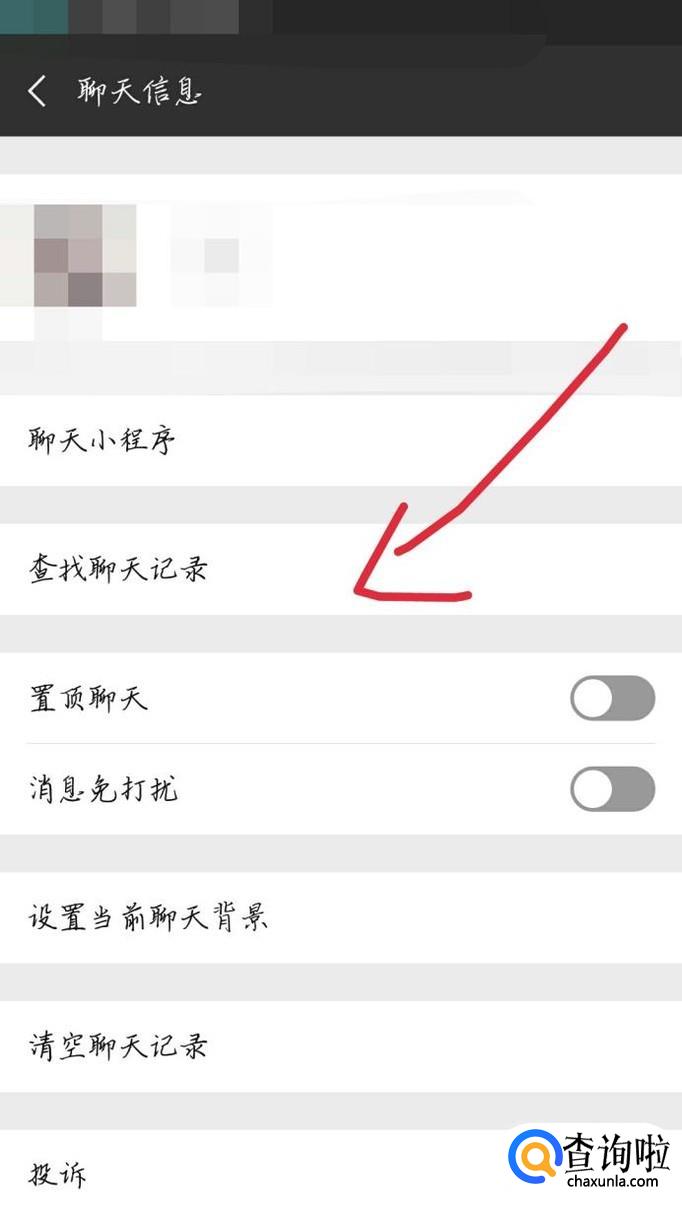 点击右上角“3个点点”选项,如图1箭头所示。你会看到出现一个新的界面,点击“查找聊天记录”选项,如图2箭头所示。