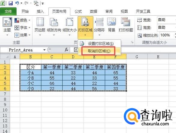 弹出的界面,我们点击取消印区域,这样就取消打印区域了。还是比较简单的,相信大家现在都会了。