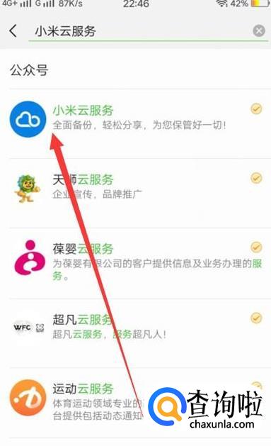 进入之后,搜索“小米云服务”,点击进入并关注,如图所示。
