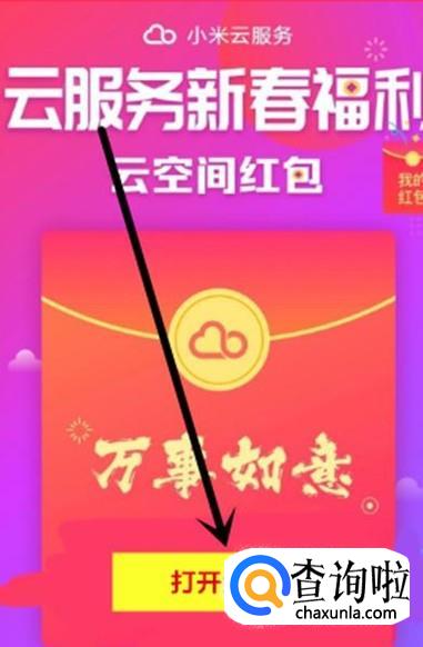 进入之后,点击“打开红包”即可领取免费存储空间,如图所示。