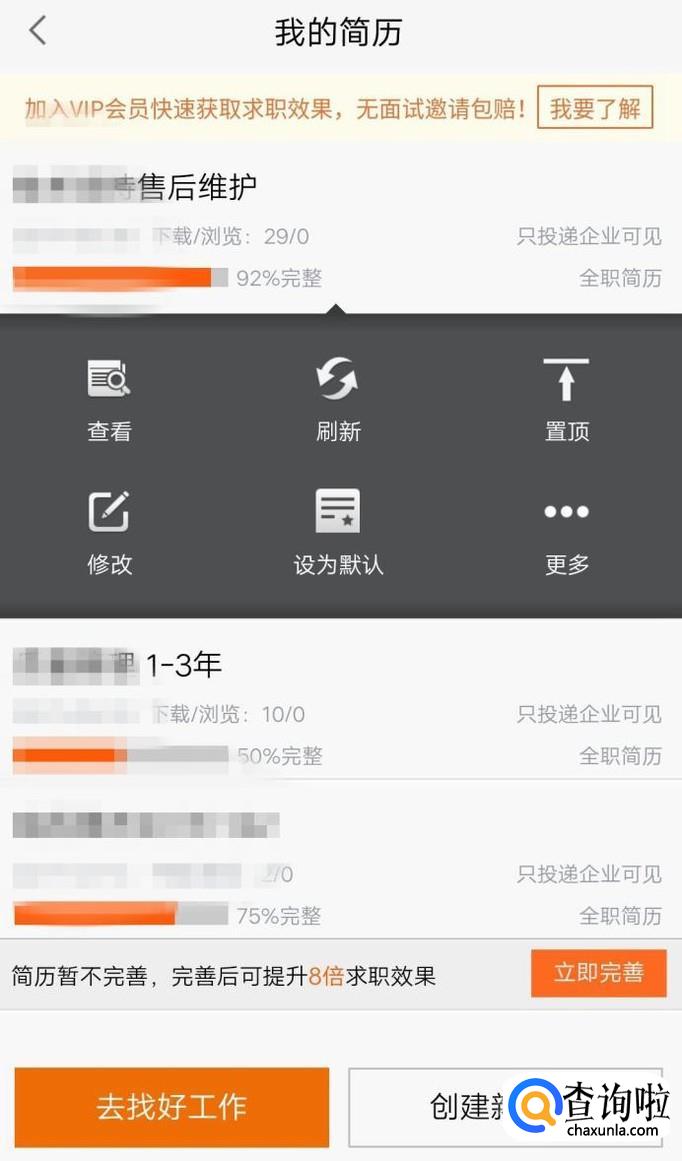 在这里按照提示创建一个简历,尽量详细描述自己的经验和优势,可以更好的吸引企业关注!