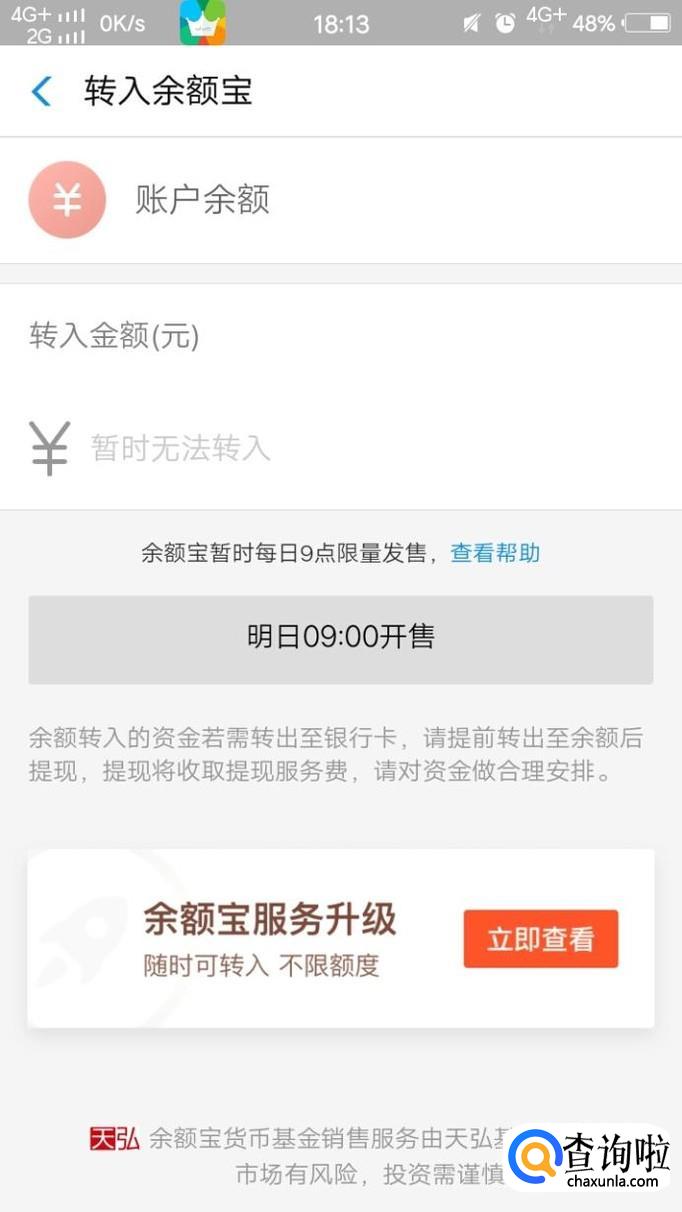 最后,点击从余额转入,并且输入自己要转入的金额,点击确定即可。但每天他有限额,从早上九点开始。