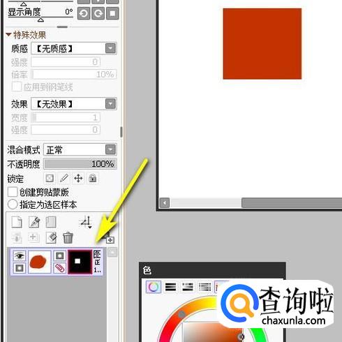 再看画布这里,已应用了蒙版效果了。色块只显示在选区范围。
