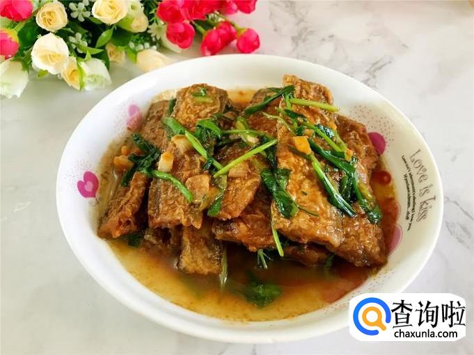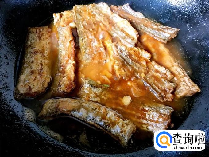 一道香喷喷的家常菜红烧带鱼就做好了,装盘。