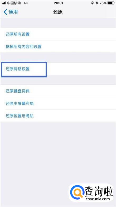 然后点击还原网络设置,如下图所示。