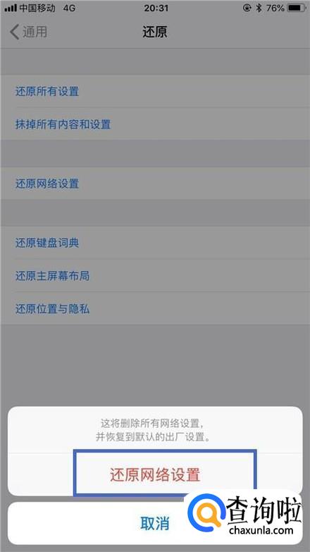 最后点击还原网络设置,等待还原完成就可以了。