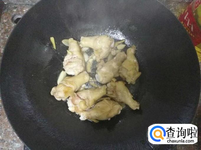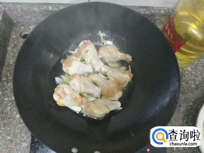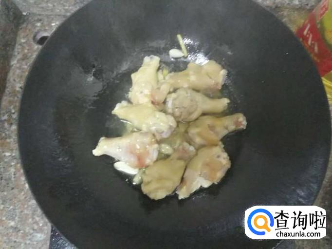 往锅里加入事先腌制好的翅根