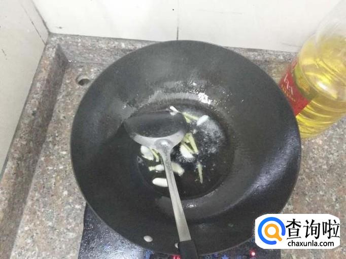 开小火,往锅里加入适量的油,待油温合适之后加入事先切好的蒜,翻炒几下直至将蒜炒出香味