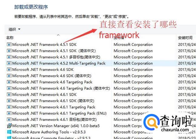 另外你也可以直接在程序和功能界面的程序列表中查看安装的Net Framework版本,如下图所示